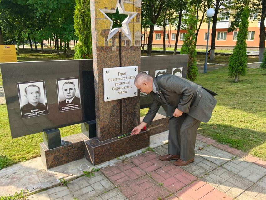 Возложение цветов к вечному огню и к памятникам героев Советского союза, уроженцам Сафоново
