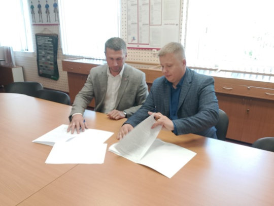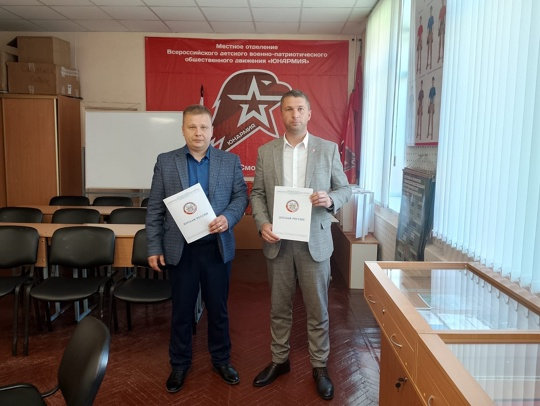 4 сентября в рамках проведения рабочего совещания начальников юнармейских отрядов города Смоленска прошла встреча и.о. председателя Регионального отделения ДОСААФ России Смоленской области Владимира Александровича Толпыго с начальником регионального штаба Всероссийского детско-юношеского военно-патриотического общественного движения «Юнармия» Смоленской области Н.А. Меченовым, на которой обсуждалась совместная работа по вопросам взаимодействия в сфере военно-патриотического воспитания, проведение совместных образовательных и просветительских мероприятий. В торжественной обстановке состоялось подписание соглашения о сотрудничестве и взаимодействии между Региональным отделением ДОСААФ России Смоленской области и ВВПОД «Юнармия».